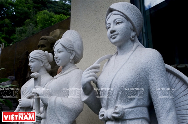 ![]() Tượng chân dung nhạc sĩ Văn Cao, tác giả bài Quốc ca Việt Nam, của Nghệ nhân Nhân dân Nguyễn Long Bửu. Ảnh: Thanh Hòa ![]() Bộ tượng thiếu nữ Bắc – Trung – Nam của Nghệ nhân Nhân dân Nguyễn Long Bửu. Ảnh: Thanh Hòa ![]() Ngoài các sản phẩm truyền thống, làng đá Non Nước còn sản xuất những sản phẩm có tính ứng dụng cao trong trang trí nội thất, kiến trúc như đài phun nước, tiểu cảnh, phù điêu, non bộ, đèn đá… Ảnh: Thanh Hòa